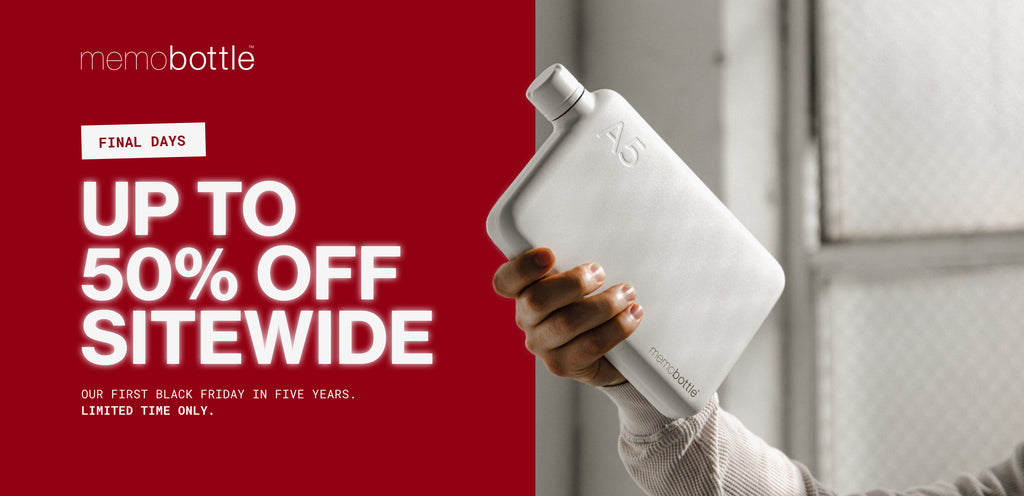 Spend €115, get €10 off your order. Spend €150, get a free A5 Original memobottle. Gifts applied automatically.