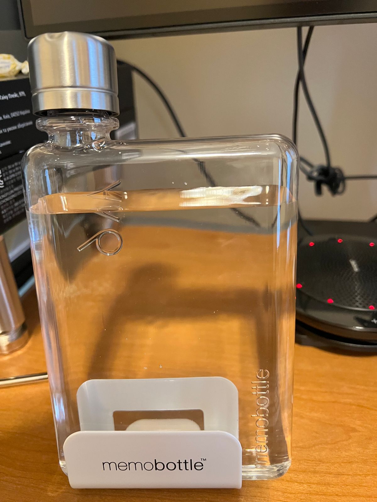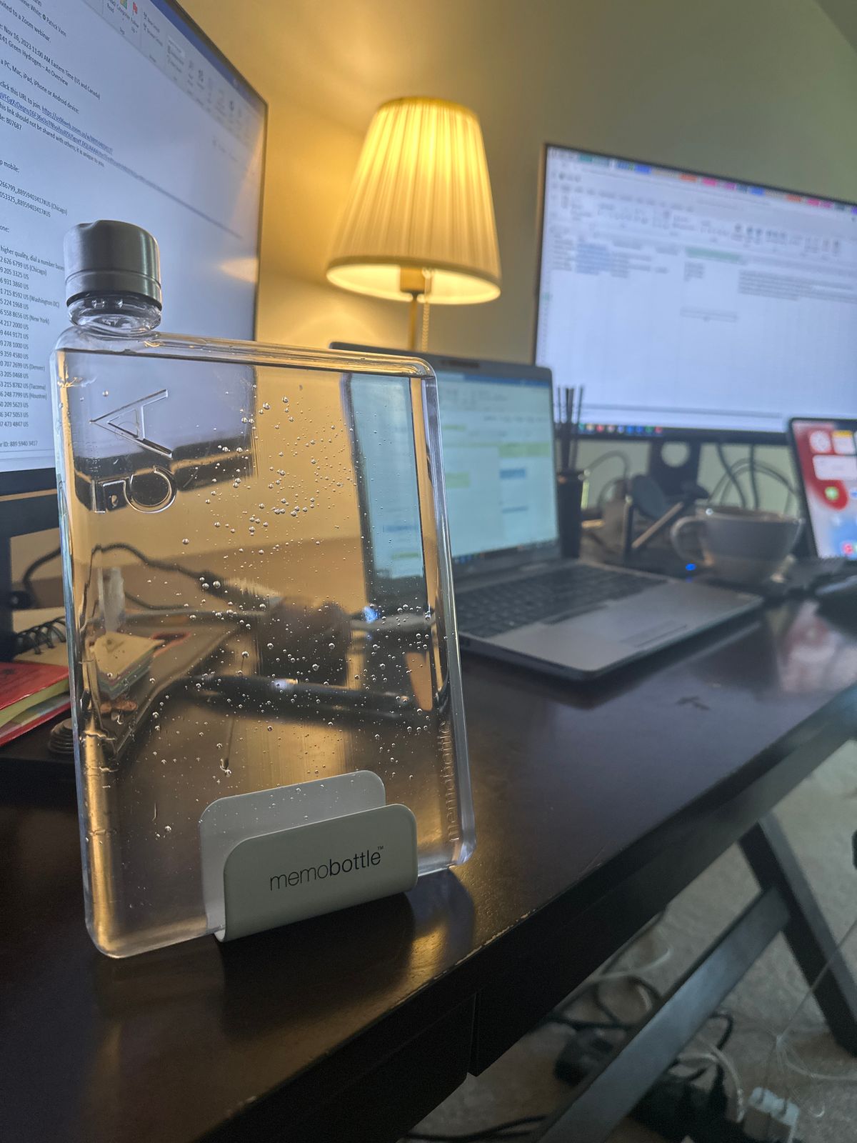The memobottle’s slim, paper-inspired form challenges the status quo of round bottles. Designed to slip neatly into bags alongside books and devices, it makes carrying water effortless and stylish.